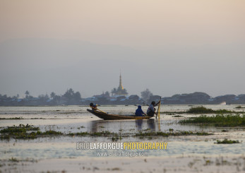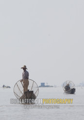 Traditional Fisherman With Fish Trap In Boat, Inle Lake, Myanmar