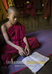 Young Novice Reading A Book, Mrauk U, Myanmar