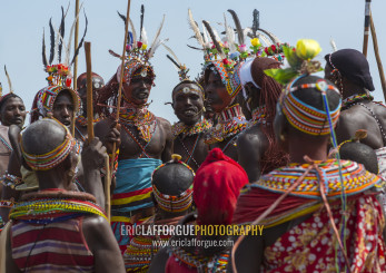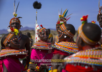 Rendille tribe men and women dancing, Turkana lake, Loiyangalani, Kenya