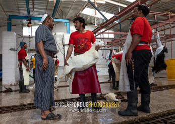 Butchers working at slaughterhouse, Najran Province, Najran, Saudi Arabia