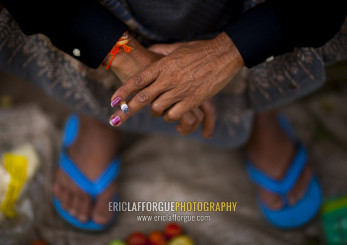 Woman smoking a cigarette, Pakse, Laos