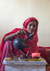 Ethiopian woman serving traditional coffee, Afar Region, Assayta, Ethiopia