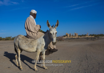 Sudan, Nubia, Soleb, man riding a donkey