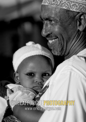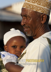 Muslim father with his baby, Lamu County, Lamu, Kenya