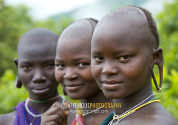 Suri tribe women with enlarged earlobe, Kibish, Ethiopia
