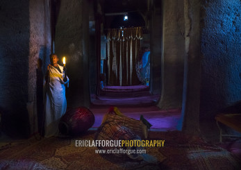 Priest Holding A Candle Inside A Rock Church, Lalibela, Ethiopia