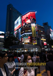Shibuya crossing at night, Kanto region, Tokyo, Japan