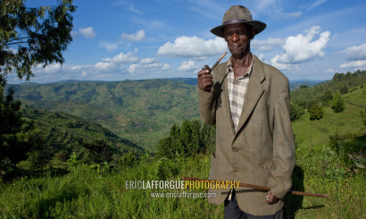 Rwandan old man smoking pipe, Kigali Province, Kigali, Rwanda