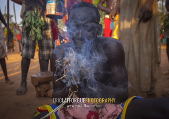 Majang Tribe Man Smoking For A Celebration, Kobown, Ethiopia