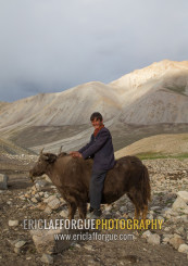 Wakhi teenage boy riding a yak, Big pamir, Wakhan, Afghanistan