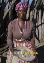 Ovambo Woman With Traditionnal Clothing, Ondangwa, Namibia