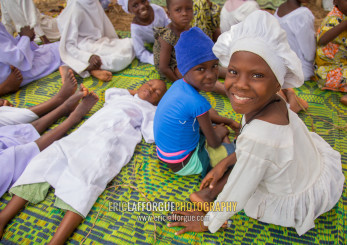 Benin, West Africa, Ganvié, celestial church of christ children resting