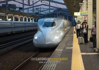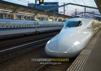 Shinkansen train in a station, Hypgo Prefecture, Himeji, Japan