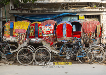 Parked decorated rickshaws, Dhaka Division, Dhaka, Bangladesh