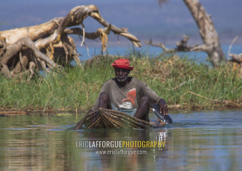 Fisherman in traditional boat rowing , Baringo county, Baringo, Kenya
