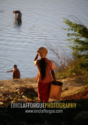 Women Collecting Water On Irrawaddy River Banks, Myanmar
