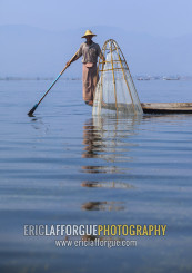 Traditional Fisherman With Fish Trap In Boat, Inle Lake, Myanmar