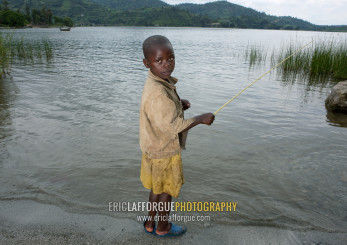Rwandan boy fishing, Lake Kivu, Gisenye, Rwanda
