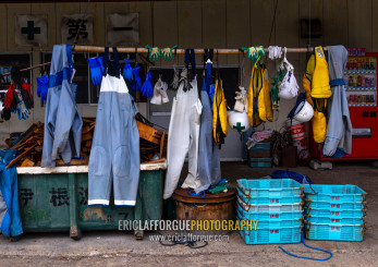 Wet fishermen clothes hanging to dry, Kyoto prefecture, Ine, Japan