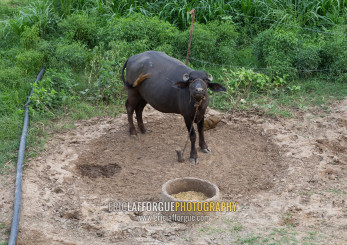 Swamp buffalo in a farm, Rajasthan, Baswa, India