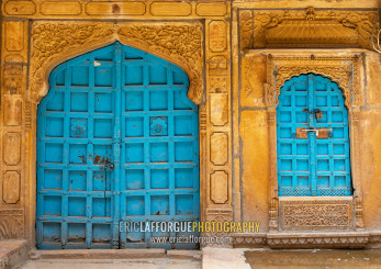 Blue door of an old haveli, Rajasthan, Jaisalmer, India