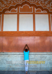 Indian man praying in a temple, Rajasthan, Jaipur, India