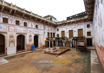 Murals in the courtyard of a haveli, Rajasthan, Nawalgarh, India