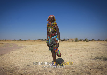 Mumuhuila Woman In Traditional Clothes Wearing Sneakers, Hale Village, Angola