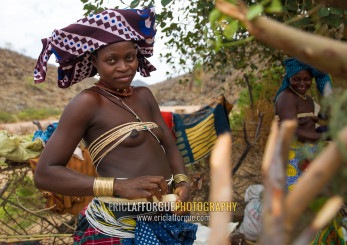 Mucubal tribe women in their village, Namibe Province, Virei, Angola