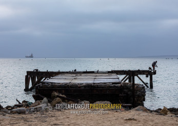 Damaged jetty on praia das Miragens, Namibe Province, Namibe, Angola