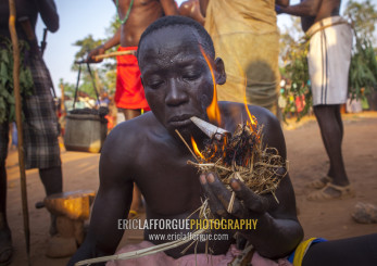 Majang Tribe Man Smoking For A Celebration, Kobown, Ethiopia