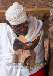 Orthodox priest praying with a bible, Amhara region, Lalibela, Ethiopia
