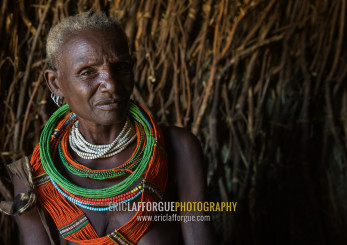 Toposa tribe woman in her hut, Omo valley, Kangate, Ethiopia