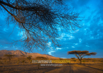 Acacias trees in an arid landscape, Oromia, Metehara, Ethiopia