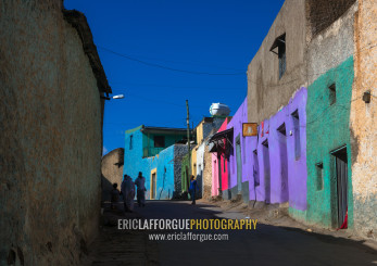 Multicoloured houses in the old town, Harari region, Harar, Ethiopia
