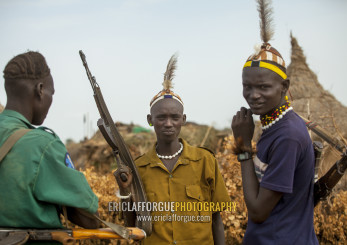 Dassanech Men With Their Guns, Omorate, Omo Valley, Ethiopia