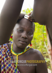 Suri tribe woman having a haircut, Kibish, Omo valley, Ethiopia
