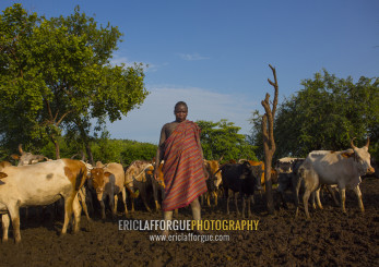 Bodi Tribe Man And Cattle, Hana Mursi, Omo Valley, Ethiopia