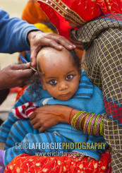 Kid Having His Hair Shaved, Maha Kumbh Mela, Allahabad, India