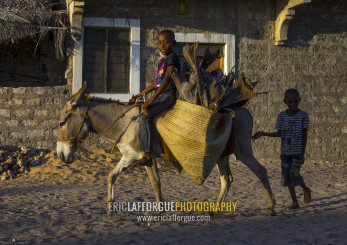 Child riding a donkey, Lamu county, Matondoni, Kenya