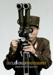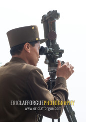 North Korean soldier looking south Korea with binoculars at the Demilitarized Zone, North Hwanghae Province, Panmunjom, North Korea
