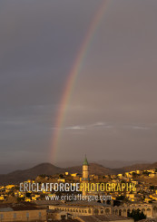 Rainbow over the mosque in the town, Semien-Keih-Bahri, Keren, Eritrea
