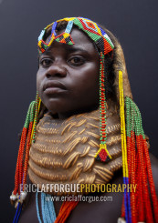 Mwila tribe girl with a vikeka necklace, Huila Province, Chibia, Angola