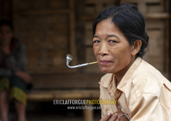 Khmu minority woman smoking pipe, Xiangkhouang province, Xieng Khouang, Laos