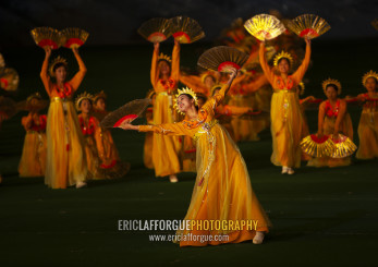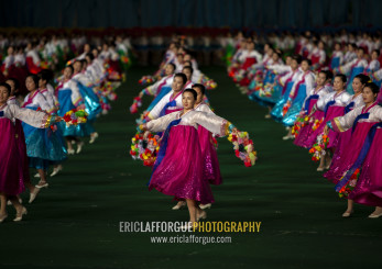 North Korean women dancing in choson-ot during the Arirang mass games, DGC, Pyongyang, North Korea
