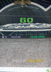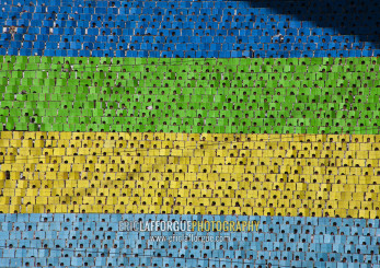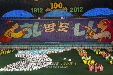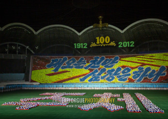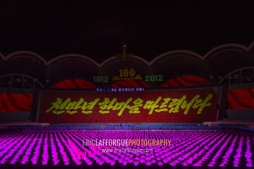 Children holding up boards during Arirang, DGC, Pyongyang, North Korea