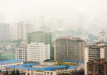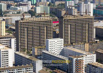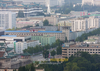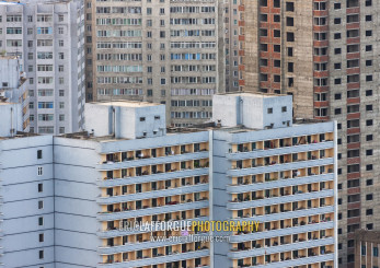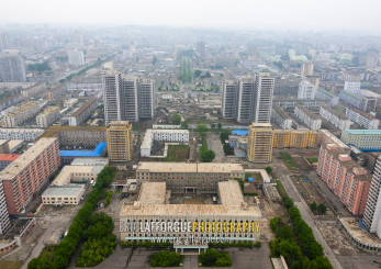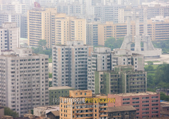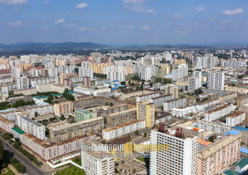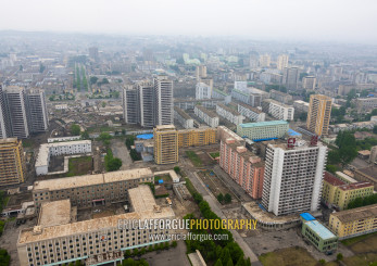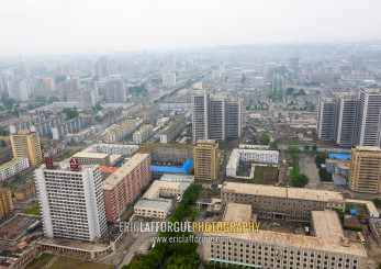 High angle view of buildings in the city center, DGC, Pyongyang, North Korea