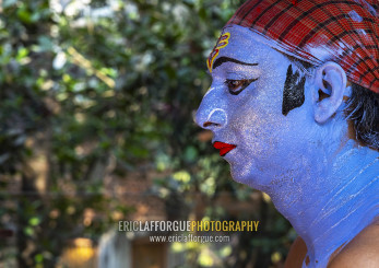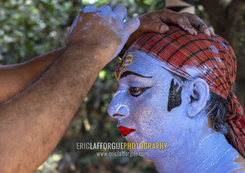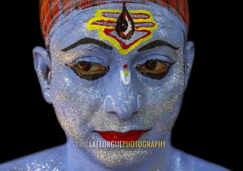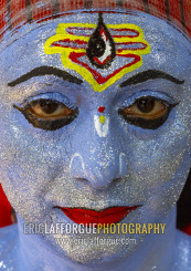 Make up of a hindu devotee who becomes Lord Shiva at Lal Kach festival, Dhaka Division, Munshiganj Sadar, Bangladesh