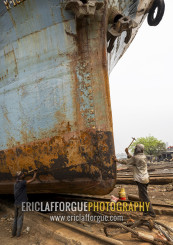 Workers at Dhaka Shipyard removing rust, Dhaka Division, Keraniganj, Bangladesh