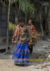 Bangladeshi couple carrying dried tobacco leaves, Rangpur Division, Rangpur, Bangladesh